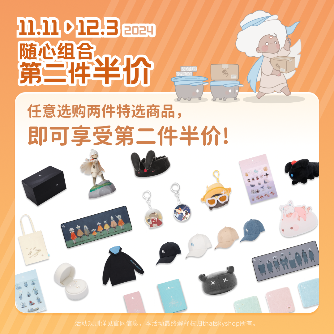 ※活动将于美国西部时间2024年12月2日 11:59PM截止,库存有限,售完即止。当订单内包含两件特选产品时,较低价格的单品将享受50%价格减免。此优惠不可分享或转让。该优惠不可用于兑换现金或商店积分。thatskyshop.cn保留在任何时候终止该优惠活动的权利,恕不提前通知。使用此优惠,则表明您同意我们的服务条款和隐私政策。其他活动条款可能适用。