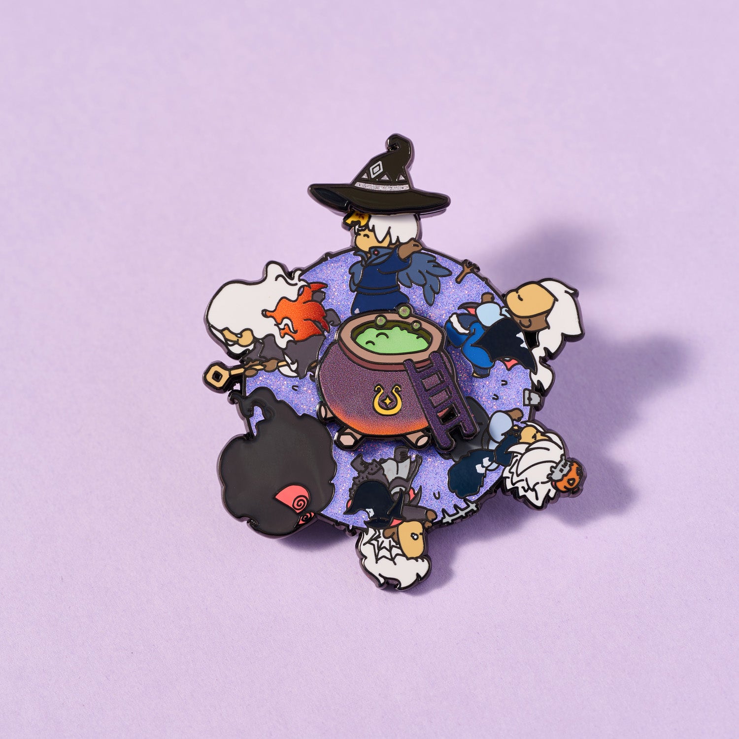 魔法时刻,自由冠冕!这款徽章暗藏玄机——通过旋转设计,为不同角色戴上女巫帽。徽章采用仿珐琅与闪粉工艺,中央魔法大锅蕴含绿色夜光,金属部分镀以黑镍,于黑暗中泛起幽光,让魔法在黑夜中觉醒。